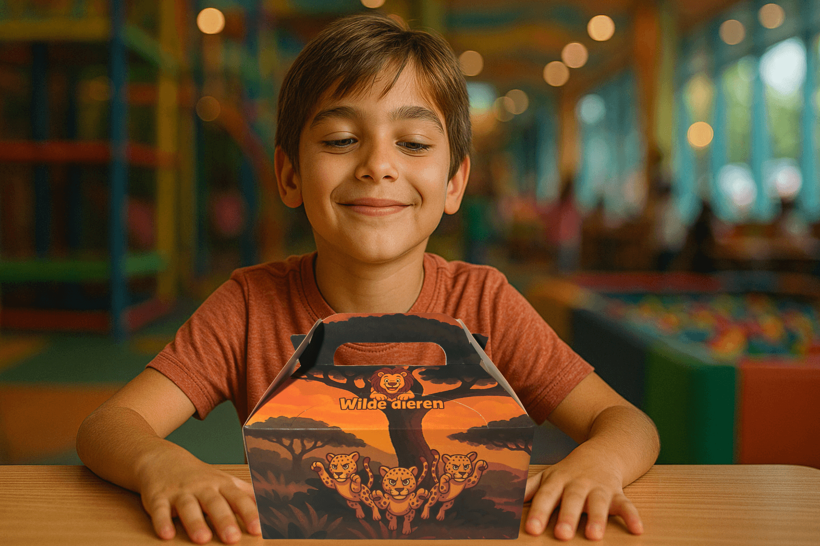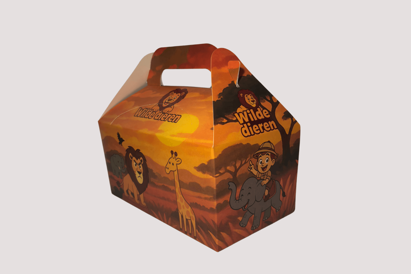 Met de Wilde Dieren Kidsbox nemen we kinderen mee op een spannend avontuur door de jungle! Doormiddel van het leuke design trekt dit gegarandeerd de aandacht.